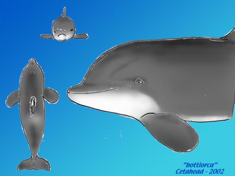 This one I did as a theoretical if a hybrid of a bottlenose dolphin and killer whale were possible. I don't really like how it came out though.